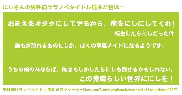 | ヒーロー風カッコイイあだ名 | 『ネオニシ』『愛の使者にし』 |