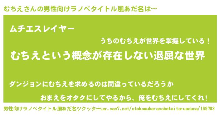 | 意味不明あだ名 | 『永久保存むちえ』『めかぶ科むちえ属』 |