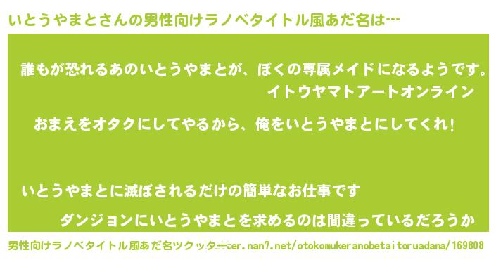 | ヘコむあだ名 | 『いとうやまと(小並感)』『いとを』 |