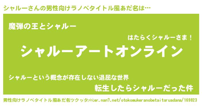 | 女子向けラノベタイトル風あだ名 | 『シャルー姫と円卓の騎士』 |