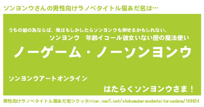 | 女子向けラノベタイトル風あだ名 | 『死神ソンヨンウの再婚』 |