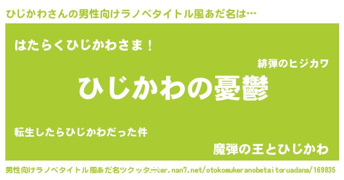 | 女子向けラノベタイトル風あだ名 | 『ひじかわ姫と円卓の騎士』 |