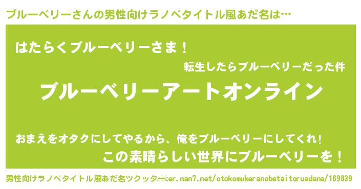 | 胡散臭い通販商品みたいなあだ名 | 『億万長者になれる霊験あらたかなお札…その名も「ブルーベリー」』 |