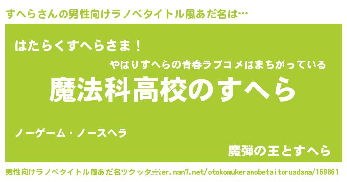 | 意味不明あだ名 | 『自称すへら』『住所不定無職すへら(2歳)』 |