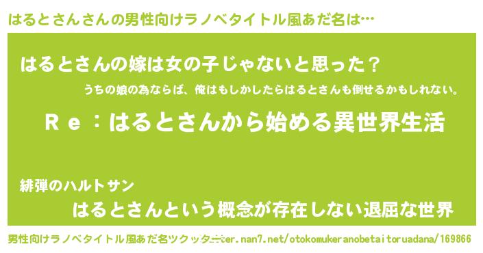 | 意味不明あだ名 | 『自称はるとさん』『永久保存はるとさん』 |