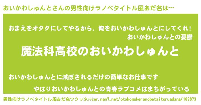 | 意味不明あだ名 | 『自称おいかわしゅんと』 |