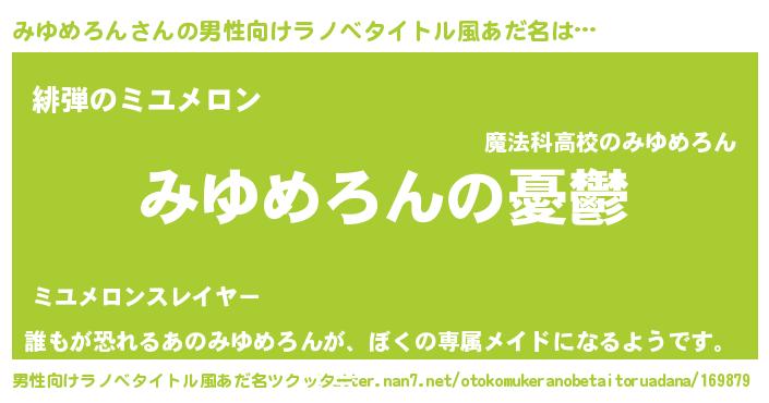 | 女子向けラノベタイトル風あだ名 | 『(仮)みゆめろんのやんごとなき事情』 |