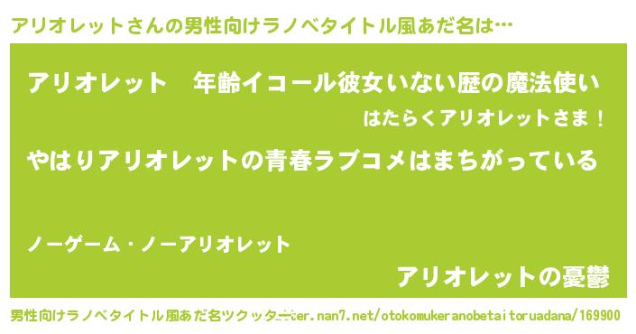 | 胡散臭い通販商品みたいなあだ名 | 『幸せが訪れる高級そうな絵画…その名も「アリオレット」』 |