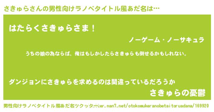 | 女子向けラノベタイトル風あだ名 | 『さきゅらの婚約者』 |