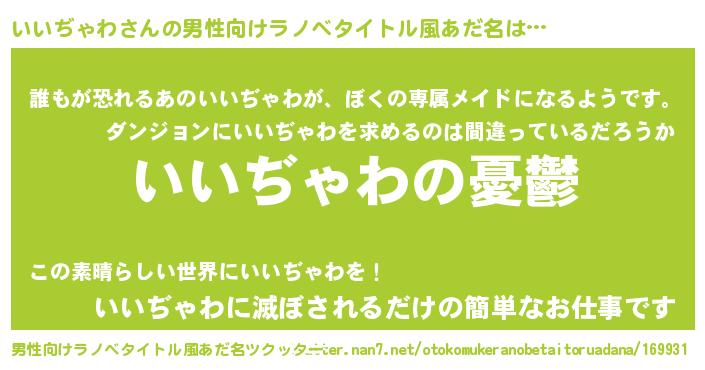 | 女子向けラノベタイトル風あだ名 | 『(仮)いいぢゃわのやんごとなき事情』 |