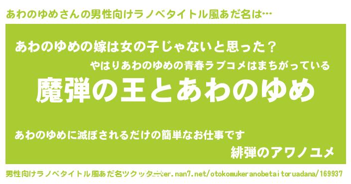 | 女子向けラノベタイトル風あだ名 | 『乙女ゲームの破滅フラグしかない悪役あわのゆめに転生してしまった…』 |