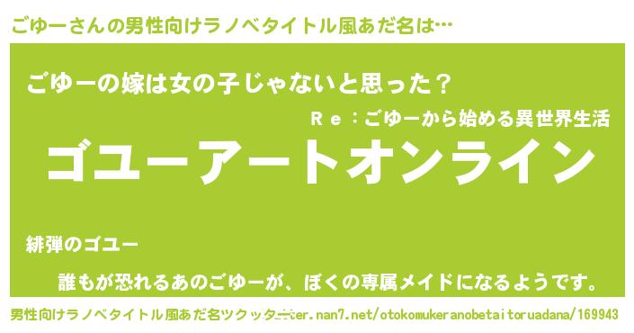 | 女子向けラノベタイトル風あだ名 | 『ごゆー姫と円卓の騎士』 |