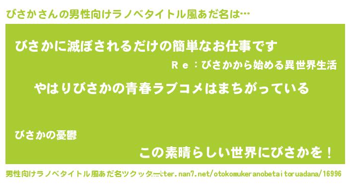 | 女子向けラノベタイトル風あだ名 | 『びさかの雑貨屋さん』 |