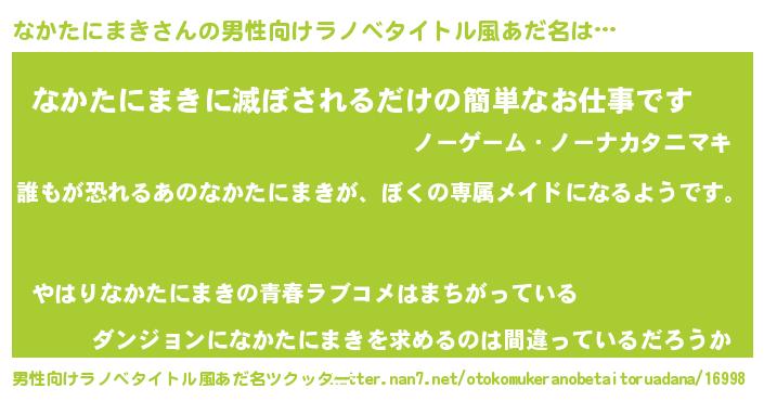 | 女子向けラノベタイトル風あだ名 | 『異世界でカフェなかたにまきを開店しました。』 |