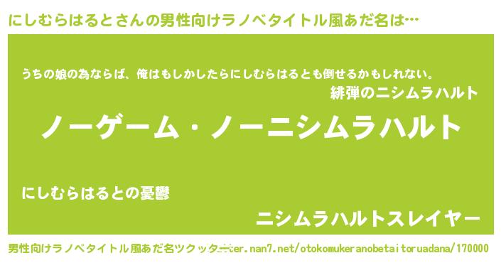 | 肩書あだ名 | 『にしむらはると助手』 |