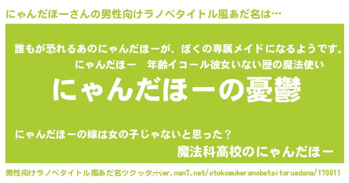 にゃんだほーさんの男性向けラノベタイトル風あだ名をツクッター!
