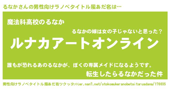 | 女子向けラノベタイトル風あだ名 | 『るなか姫と円卓の騎士』 |