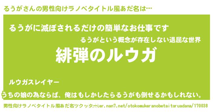 るうがさんの男性向けラノベタイトル風あだ名をツクッター!