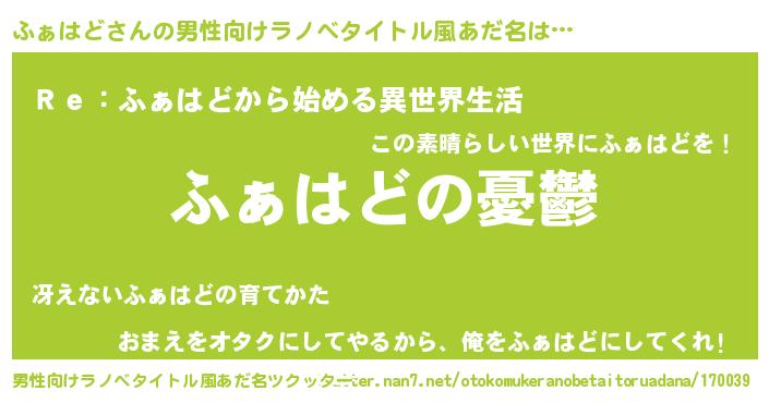 | 胡散臭い通販商品みたいなあだ名 | 『必ず成功する水晶球…その名も「ふぁはど」』 |
