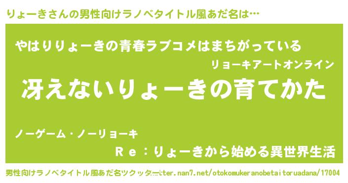 | ヒーロー風カッコイイあだ名 | 『ウルトラりょーきマン』『幻影騎士リョ』 |