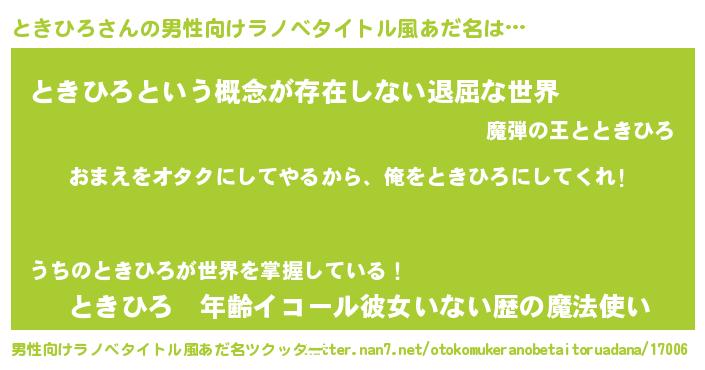 | ヒーロー風カッコイイあだ名 | 『正義の使者ときひろ』『ネオトキヒロ』 |