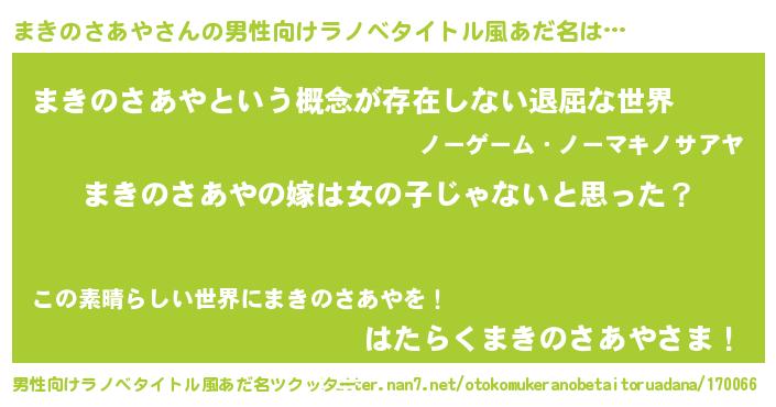 | 女子向けラノベタイトル風あだ名 | 『まきのさあや様がみてる』 |