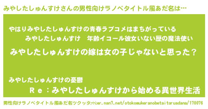 | 胡散臭い通販商品みたいなあだ名 | 『全米が絶賛したサプリメント…その名も「みやしたしゅんすけ」』 |