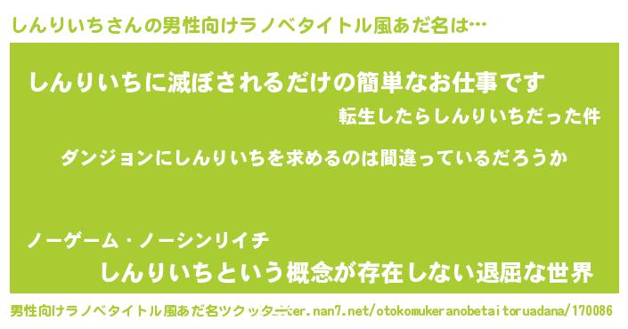 | 意味不明あだ名 | 『とにかく怪しいしんりいち』 |