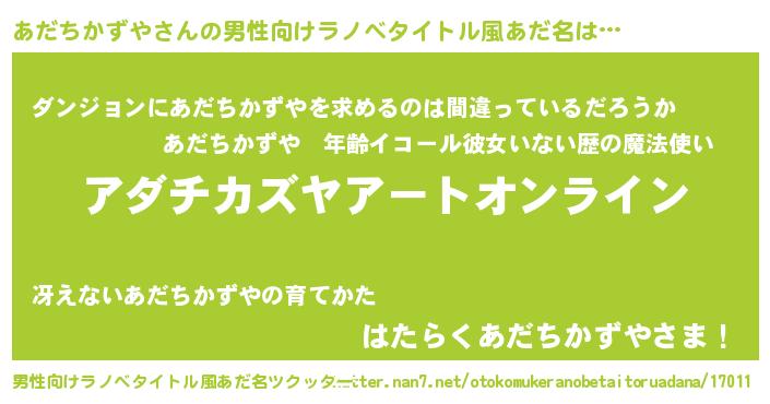 | 女子向けラノベタイトル風あだ名 | 『誰かこのあだちかずやを説明してください! ~契約から始まるウェディング~』 |