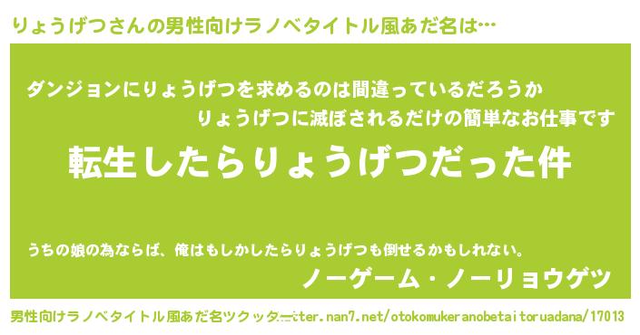りょうげつさんの男性向けラノベタイトル風あだ名をツクッター!