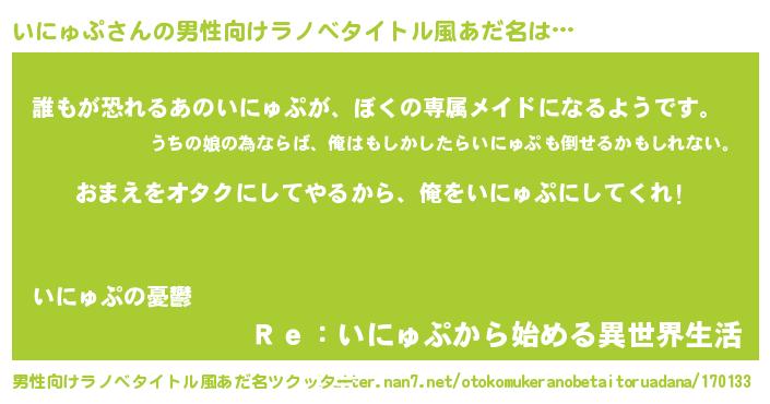 | ヒーロー風カッコイイあだ名 | 『正義の使者いにゅぷ』『ネオイニュプ』 |