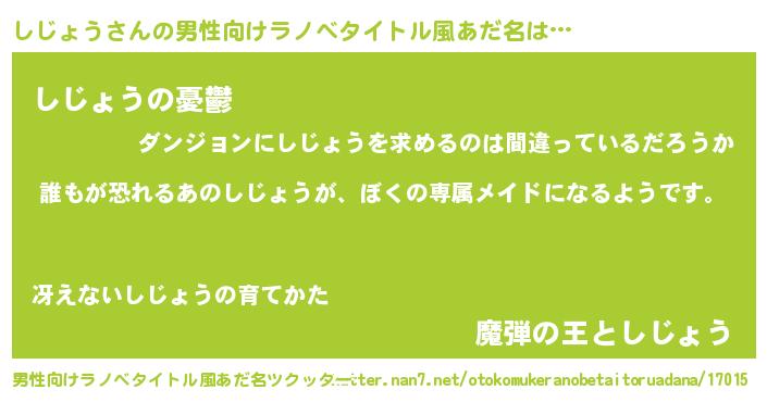| 胡散臭い通販商品みたいなあだ名 | 『前代未聞の健康食品…その名も「しじょう」』 |