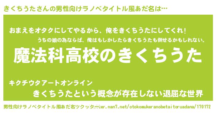 | 女子向けラノベタイトル風あだ名 | 『きくちうたなんてお断りですっ。』 |