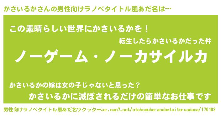 | ヒーロー風カッコイイあだ名 | 『慈愛の使者かさいるか』『仮面カサダー』 |