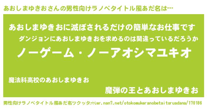 | ヘコむあだ名 | 『あおっぺ』『あおしまゆきお(笑)』 |