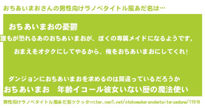 | 胡散臭い通販商品みたいなあだ名 | 『100人中100人が認めたマグネット磁石…その名も「おちあいまお」』 |