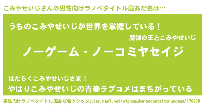 | 胡散臭い通販商品みたいなあだ名 | 『お金では代えられないマグネット磁石…その名も「こみやせいじ」』 |