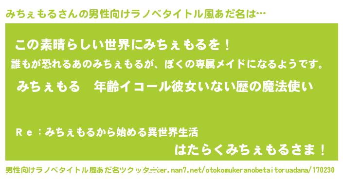 | 伝説のあだ名 | 『古文書に記された勇者みちぇもる』 |
