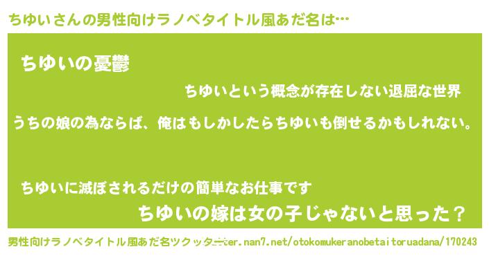 | ファンタジー風あだ名 | 『エターナルチユイー』『チユフェル』 |