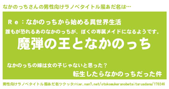 | 女子向けラノベタイトル風あだ名 | 『なかのっちが死なない童話 林檎のなかのっちの診療簿』 |