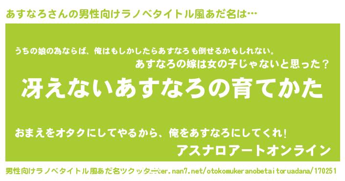 | 胡散臭い通販商品みたいなあだ名 | 『世界が平和になる高級そうな絵画…その名も「あすなろ」』 |
