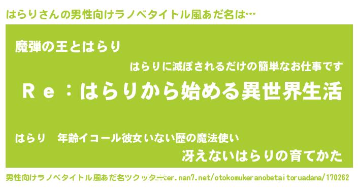 | 女子向けラノベタイトル風あだ名 | 『はらりストレイドッグス』 |