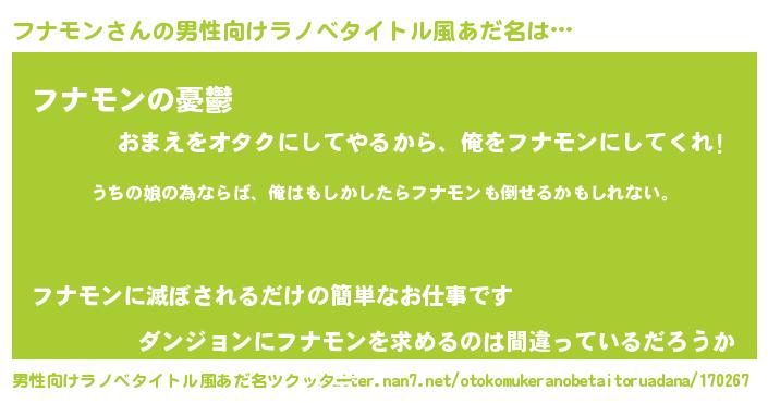 | 意味不明あだ名 | 『フナモンフォーエバー』『自称フナモン』 |