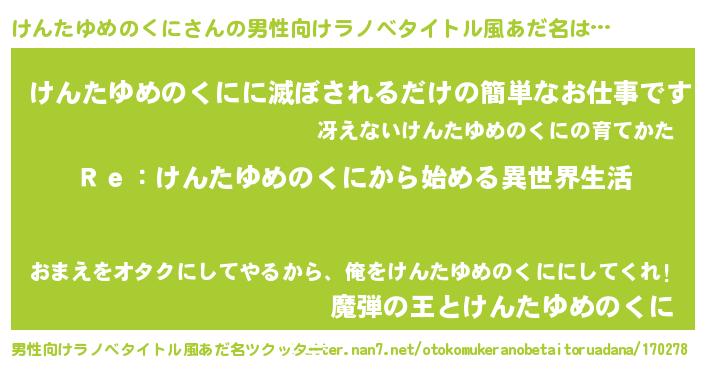 | 意味不明あだ名 | 『自称けんたゆめのくに』 |