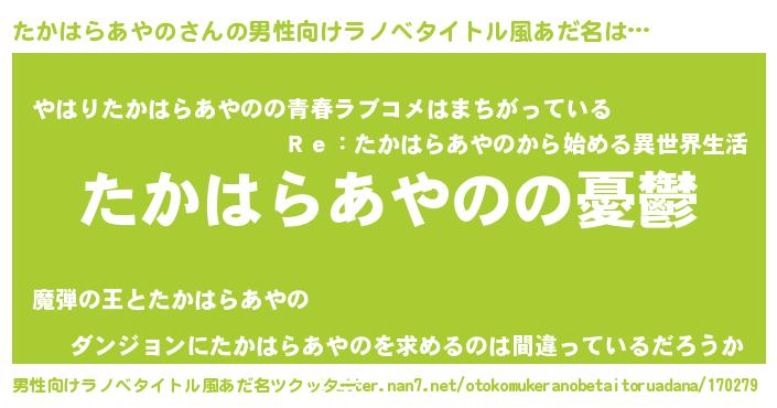 | ヒーロー風カッコイイあだ名 | 『スーパータカハラアヤノ』 |