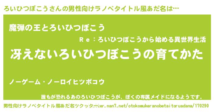 | ヘコむあだ名 | 『ろいひつぼこう(笑)』『ろいっぺ』 |