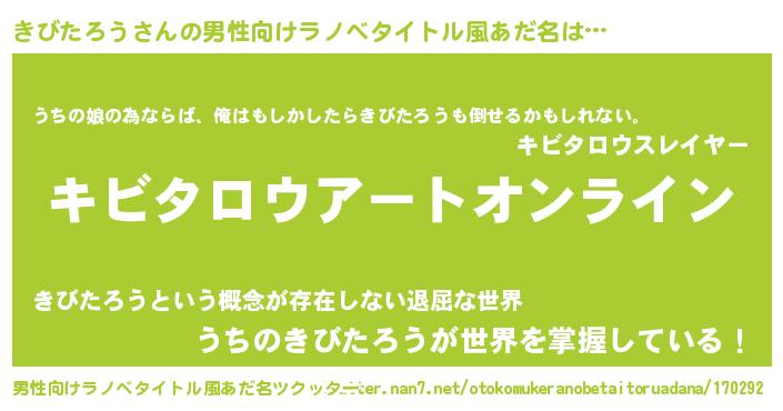 | 女子向けラノベタイトル風あだ名 | 『誰かこのきびたろうを説明してください! ~契約から始まるウェディング~』 |