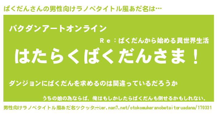 | 胡散臭い通販商品みたいなあだ名 | 『必ず成功する水晶球…その名も「ばくだん」』 |