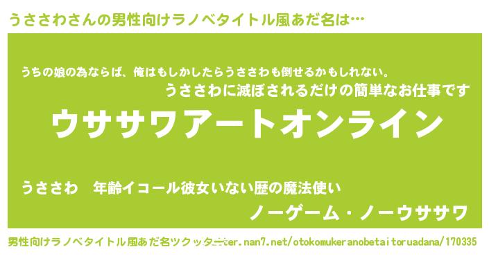 | 女子向けラノベタイトル風あだ名 | 『うささわ姫と円卓の騎士』 |
