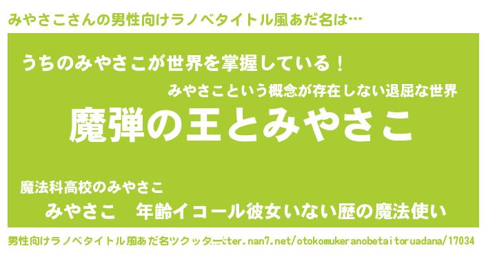 | 意味不明あだ名 | 『住所不定無職みやさこ(13歳)』 |
